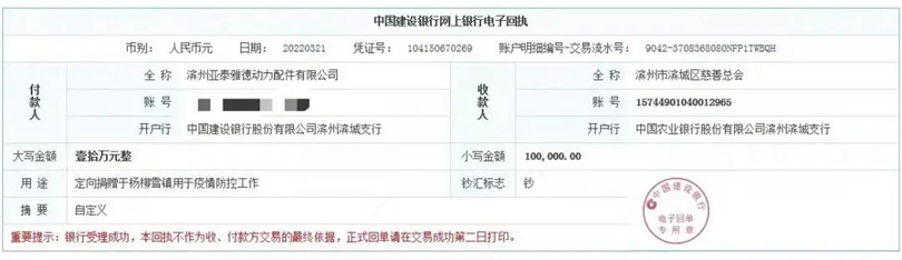 在疫情面前,全市是一個(gè)命運(yùn)共同體,更是一個(gè)責(zé)任共同體。面對(duì)天災(zāi),疫情工作者首當(dāng)其沖卻寸步不讓,為全市市民的生命安全嘔心瀝血。“豈曰無(wú)衣,與子同袍”,為了支援一線疫情工作者的抗疫工作,亞泰雅德于3月21日主動(dòng)向?yàn)I州市濱城區(qū)慈善總會(huì)捐款10萬(wàn)元,為打贏這場(chǎng)疫情防控阻擊戰(zhàn)貢獻(xiàn)自己的一份力量。我們將始終與一線疫情工作者同仇敵愾,共克時(shí)艱。